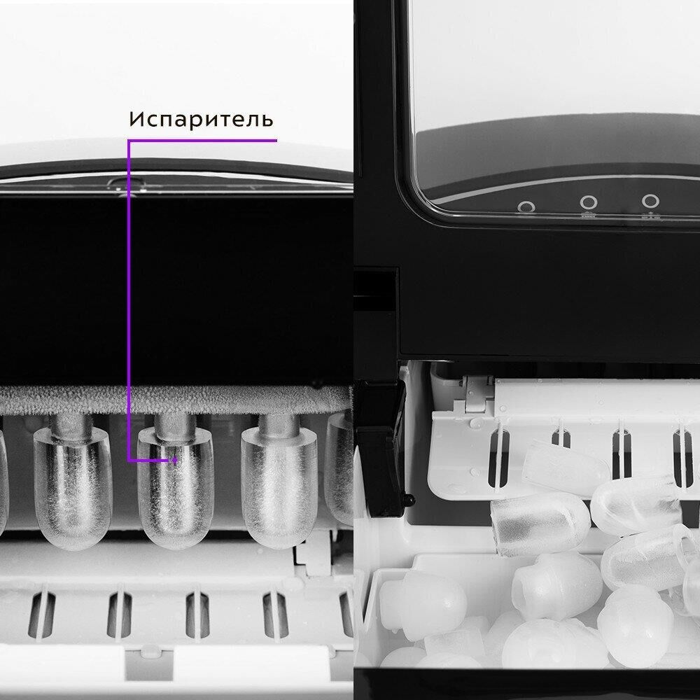 Ледогенератор Kitfort KT-1807 – прибор, который быстро генерирует лёд за 6 -13 мин. Его можно использовать дома для приготовления охлаждённых напитков или для охлаждения жидкостей. Мощность 105 Вт. Электропитание от бытовой сети. Цвет серебристый/черный. Размеры (ШхВхГ) 348х249х325 мм.