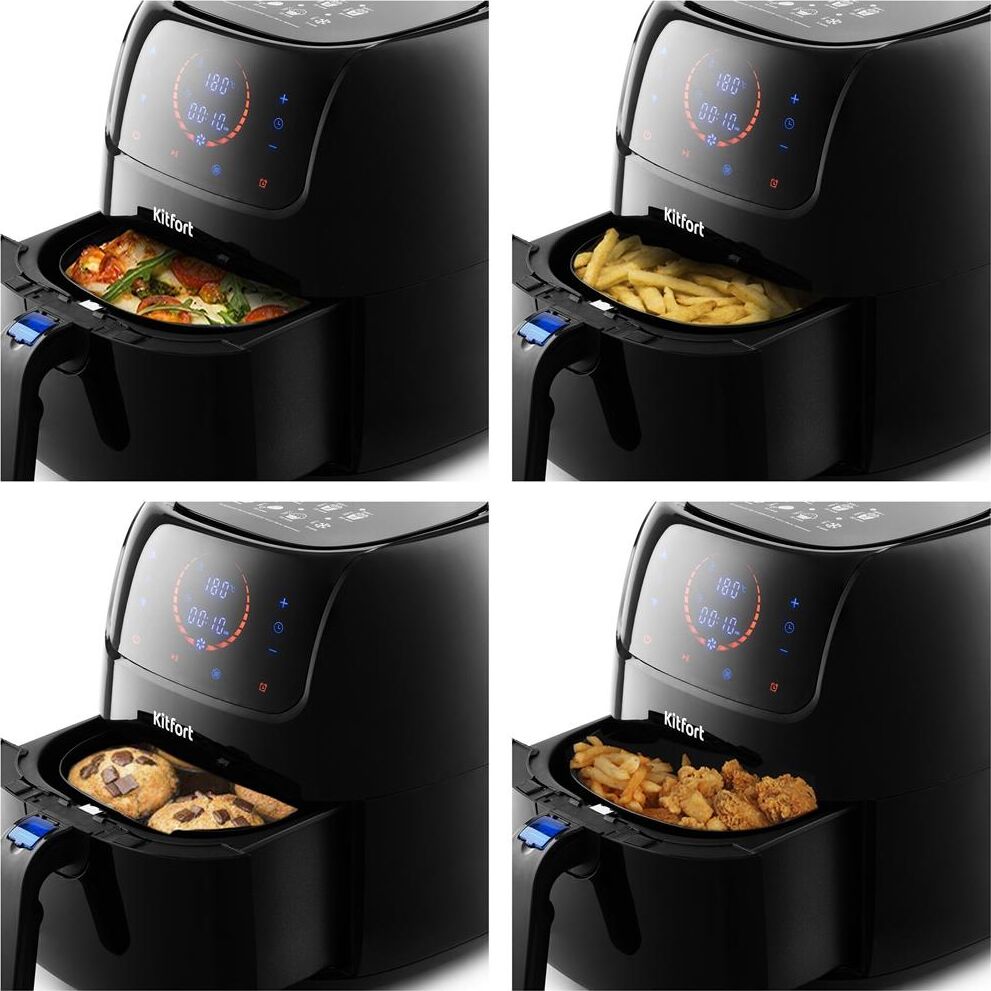 Мощность 1200–1400 Вт. Длина шнура 0,9. Объём 3 л. Напряжение 220–240 В, 50/60 Гц. Тип нагревательного элемента ТЭН. Внутренние размеры корзины 185 х 185 х 90 мм. Программы приготовления 8. Звуковая индикация есть. Регулировка температуры от 60 до 200° C c шагом 10° C. Таймер приготовления от 1 до 60 минут с шагом 1 минута. Таймер отложенного старта от 30 минут до 12 часов с шагом 30 минут. Звуковой сигнал об окончании приготовления есть. Размер устройства 341 х 279 х 316 мм.