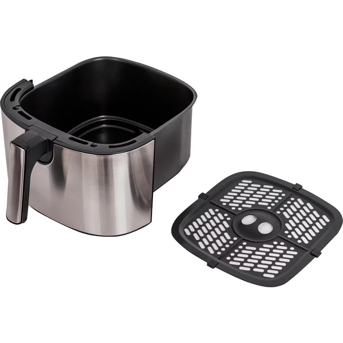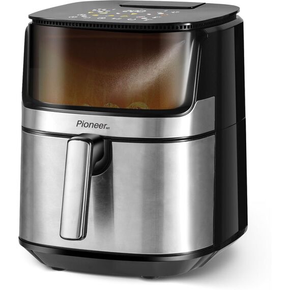 Аэрогриль, электронное управление, цветной светодиодный дисплей, мощность: 1850 Вт, внутренний объем камеры: 8 Л, функция приготовления на пару, антипригарное покрытие, смотровое окно , внутренняя подсветка, таймер: до 60 минут, регулируемая температура: 80 -200 градусов, ручная настройка режимов приготовления, 10 предустановленных программ приготовления: замороженный картофель фри, выпечка, сладкий картофель, пицца, рыба, креветки, стейк, куриные ножки, куриные крылышки, арахис, технология "Fry Force 360°" позволяет готовить блюда быстро и равномерно, практически без масла