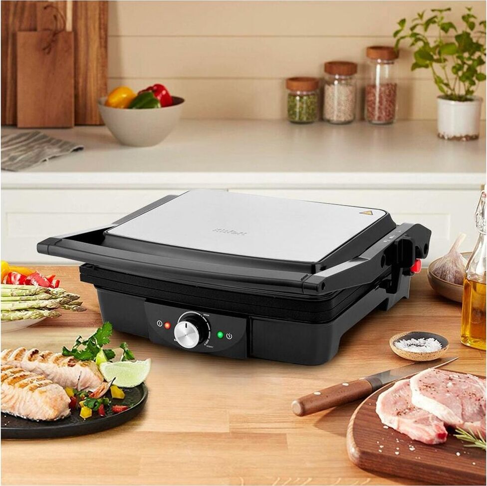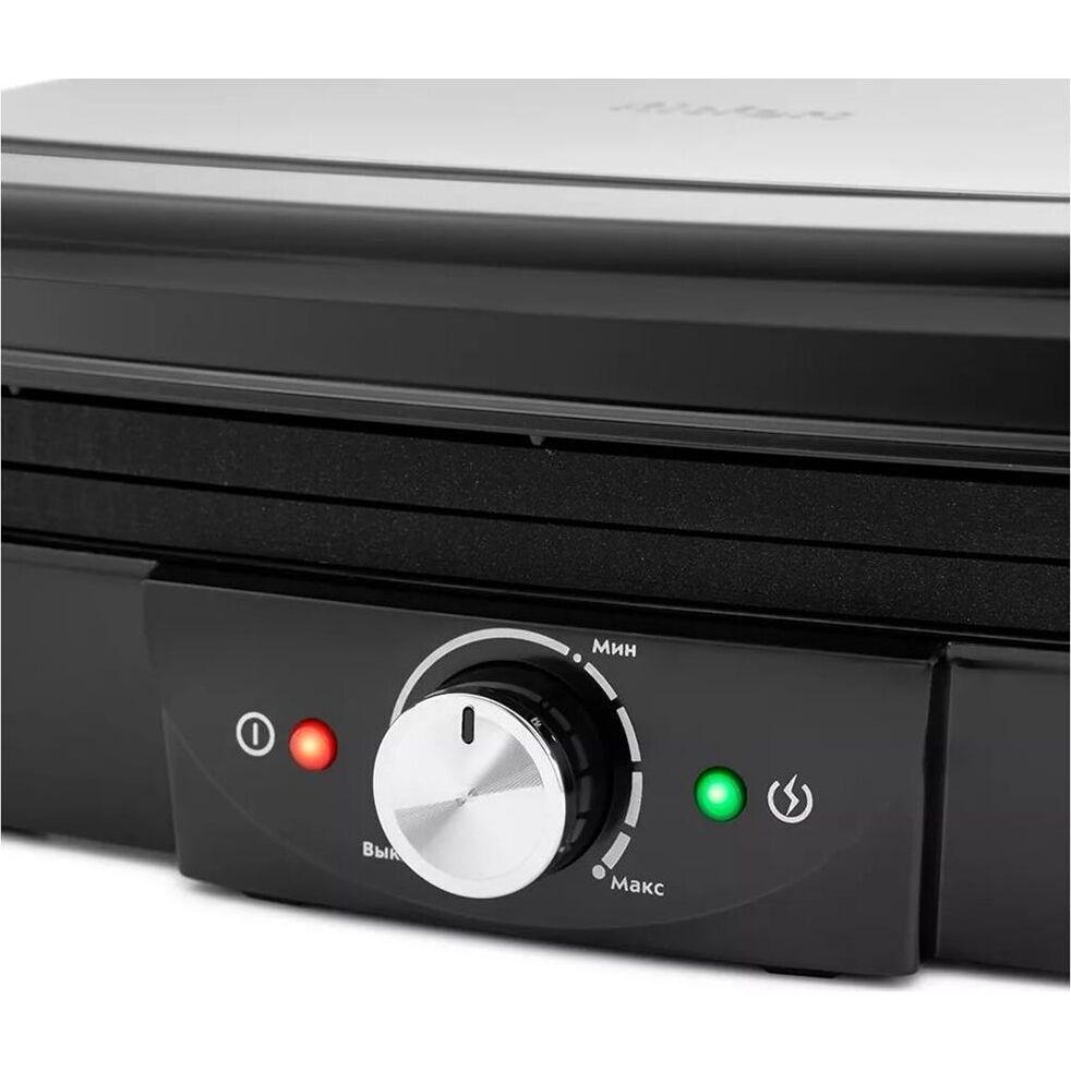 Мощность 2000 Вт. Температура 100 - 220°С. Ширина рабочей поверхности 33.2 см. Длина рабочей поверхности 31.9 см. Тип нагревательного элемента ТЭН. Тип управления механическое. Антипригарное покрытие нагревательных частей есть. Список режимов/программ приготовления 2 (режимы готовки с закрытой и с приоткрытой крышкой). Установка температуры приготовления есть. Регулировка температуры приготовления от 100 до 220 С. Лоток для сбора жира есть. Индикатор включения есть. Индикатор нагрева есть. Раскрытие на 180 градусов есть. Длина электрокабеля 0.7 м. Материал корпуса нержавеющая сталь/пластик. Цвет черный и серебристый. Размеры (ШхВхГ) 33.2 х 11.8 х 31.9см.