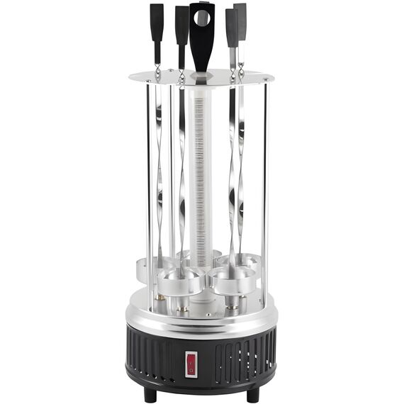 Мощность 1000Вт. Кол-во шампуров-5 шт.(комплект). Нагревательный элемент защищен стеклянной трубкой. Напряжение питания 220В. Частота тока, Гц 50. Расход электроэнергии 1 кВч. Нержавеющий и пищевой алюминиевый материал.