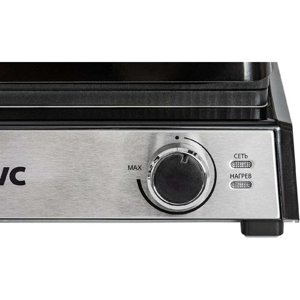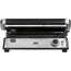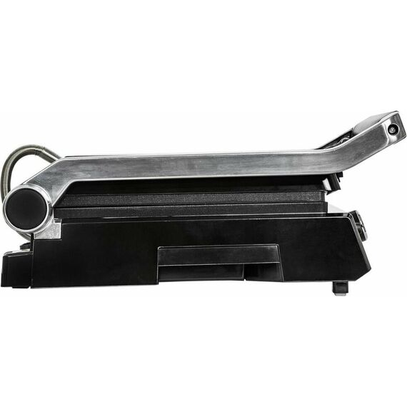 Гриль электрический, мощность 2000 Вт, корпус из матовой нержавеющей стали, плавающая крышка для регулировки толщины с 5 различными настройками высоты, съемные антипригарные панели, встроенный поддон для жира, регулятор температуры с индикатором, скребок в комплекте, панели можно мыть в посудомоечной машине