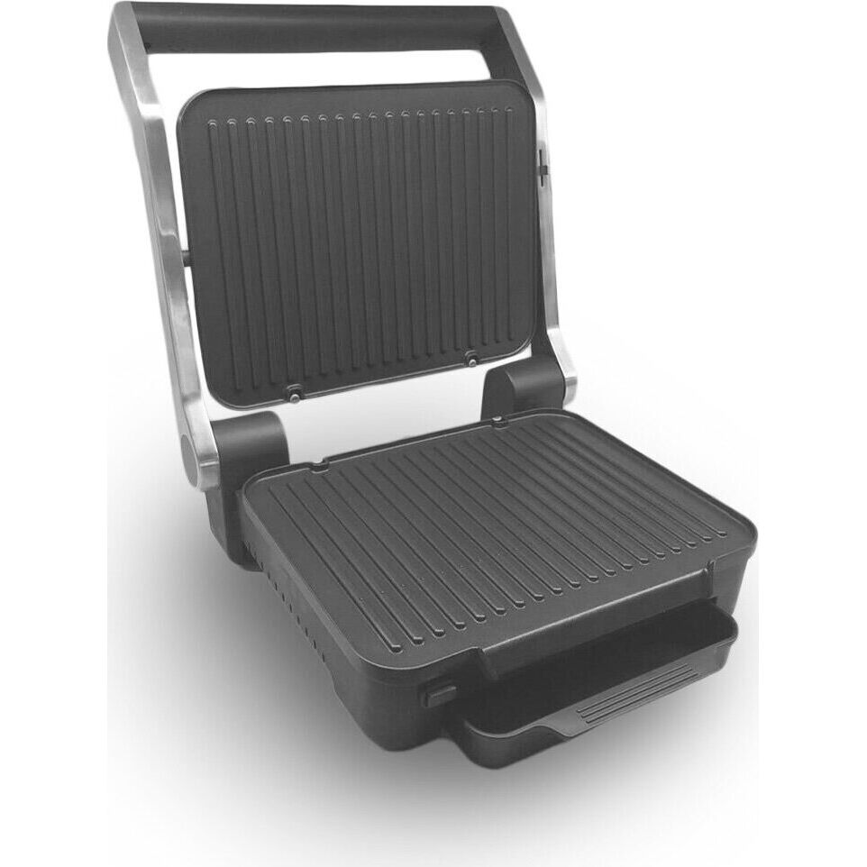 Контактный гриль Мощность: 2000 Вт Напряжение: 220-240В, 50/60Гц Сенсорная панель управления на ручке 7 автоматических программ 4 степени прожарки стейка 2 съемные жарочные панели 23х29см Антипригарное покрытие панелей Съёмный поддон для сбора жира Авторегулировка высоты верхней панели Материал корпуса: сталь / пластик