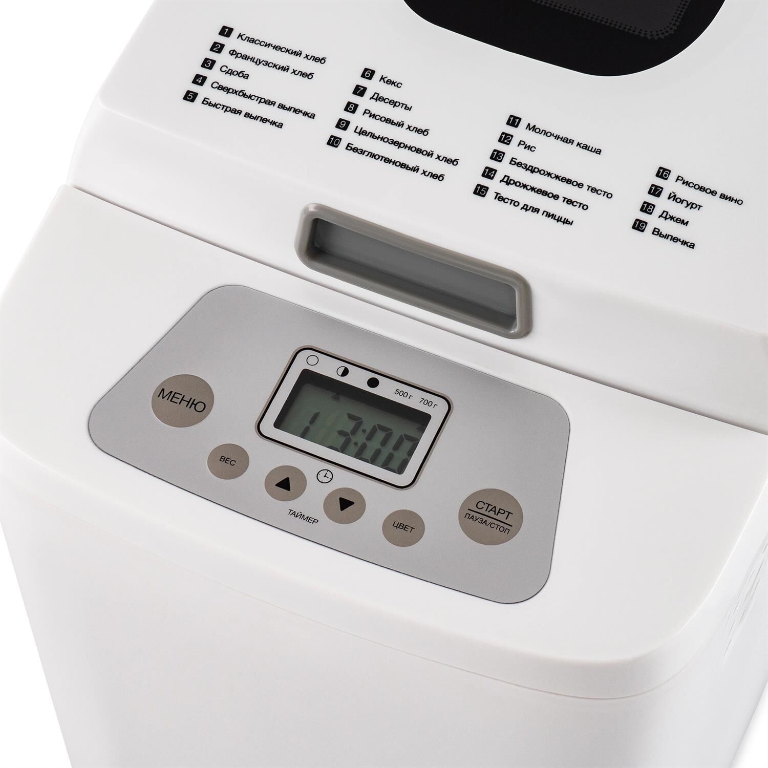 Мощность 500 Вт Максимальный вес выпечки 750 г Количество размеров выпечки 500/750 г Регулировка веса выпечки ДА Формы выпечки буханка Антипригарное покрытие формы ДА Программ приготовления 19 Поддержание температуры ДА Выбор цвета корочки ДА Окно контроля процесса ДА