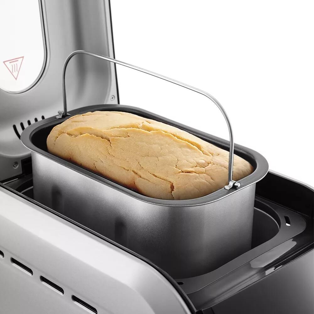 Мощность 850 Вт Тип управления электронное Автоматические программы 12 шт Материал корпуса пластик и нержавеющая сталь Ёмкость чаши 3,5 л Покрытие формы для выпечки антипригарное Вес выпечки 1000/1250/1500 г Отложенный старт до 15 часов Длина сетевого шнура 1 м Энергонезависимая память 10 мин Звуковой сигнал есть Размер устройства 264 х 437 x 298 мм Вес устройства 6,5 кг