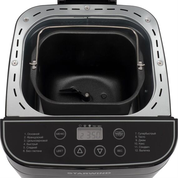 Мощность 550Вт Максимальный вес выпечки 900г Количество размеров выпечки 700/900г Регулировка веса выпечки Формы выпечки буханка Антипригарное покрытие формы Программ приготовления 12 Программ для теста 1 Замес теста Окно контроля процесса Таймер отсрочки старта 13ч Особенности: съемная крышка для удобства ухода Вес 4.5кг Цвет черный Материал корпуса пластик Срок гарантии 12 мес.