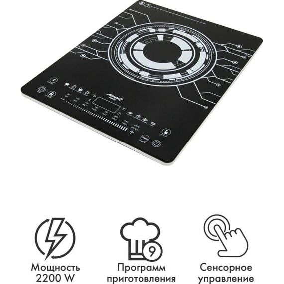 Полированная стеклокерамическая поверхность 290*370 мм. 9 программ приготовления пищи. Сенсорное управление. Высококачественного биполярный IGBT транзистор производства Siemens. Сверхширокий диапазон напряжения. Таймер включения и выключения. Функция замера мощности и напряжения. Защита от перегрева. Номинальная мощность 2000 Вт. 230 B ~ 50 Гц.