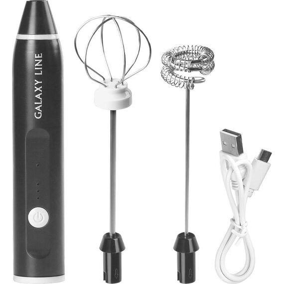 GALAXY LINE GL 0791 Вспениватель молока Энергоемкий Li-ion аккумулятор Емкость аккумулятора 3,7 В, 1200 мА*ч Время работы без подзарядки до 2 часов Время зарядки около 6 часов Мощность 5 Вт 2 универсальные насадки: венчик для взбивания яиц и жидких ингредиентов вспениватель для взбивания молока Насадки из нержавеющей стали 3 скорости работы: 5800 об./мин. / 8500 об./мин. / 12000 об./мин. Индикатор работы и заряда USB кабель для зарядки в комплекте Длина USB кабеля 49 см Гарантия 2 года