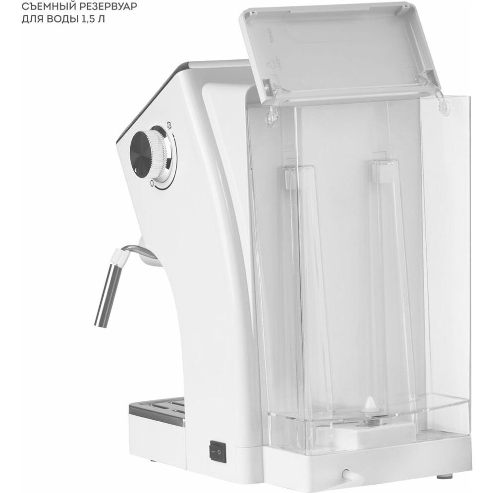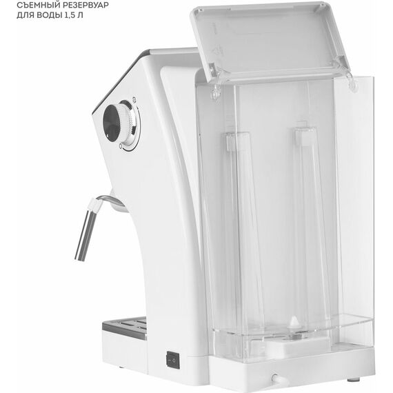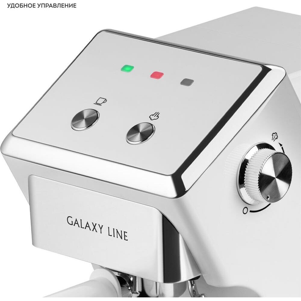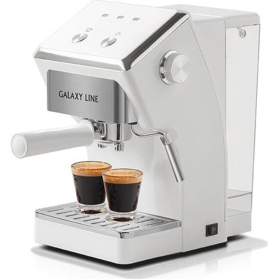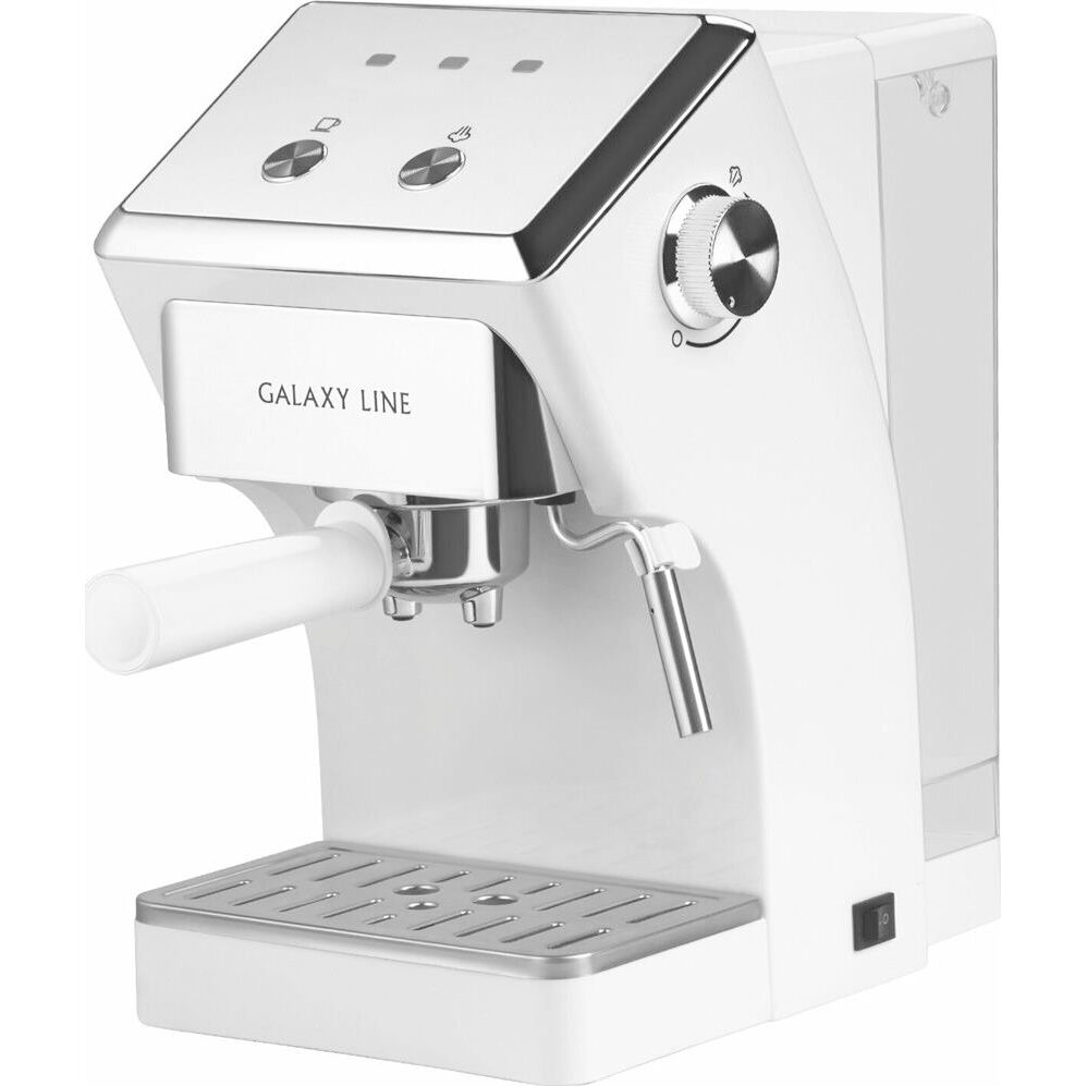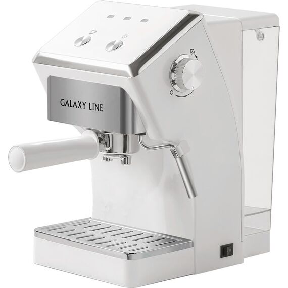 Galaxy LINE GL 0756 БЕЛАЯ Кофеварка электрическая 1500 вт, 20 бар, съемный резервуар для воды 1,5 л, съемный контейнер для кофе из нержавеющей стали, автоотключение, регулятор интенсивности подачи пара, капучинатор, 2 шт. фильтр из нержавеющей стали, 1 шт. мерная ложка,220-240 в, 50 гц,