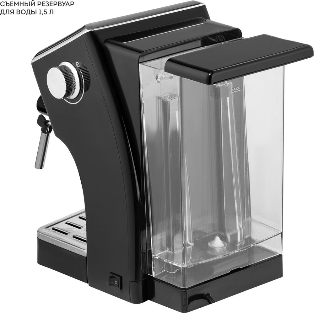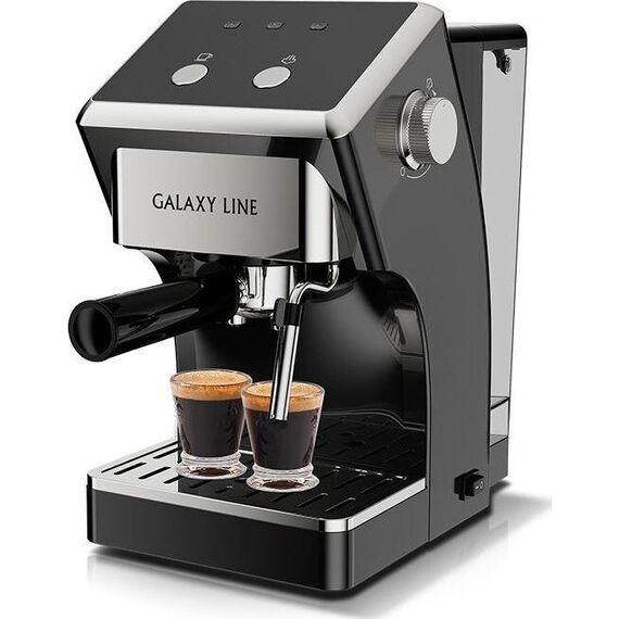 Galaxy LINE GL 0756 ЧЕРНАЯ Кофеварка электрическая 1500 вт, 20 бар, съемный резервуар для воды 1,5 л, съемный контейнер для кофе из нержавеющей стали, автоотключение, регулятор интенсивности подачи пара, капучинатор, 2 шт. фильтр из нержавеющей стали, 1 шт. мерная ложка,220-240 в, 50 гц,