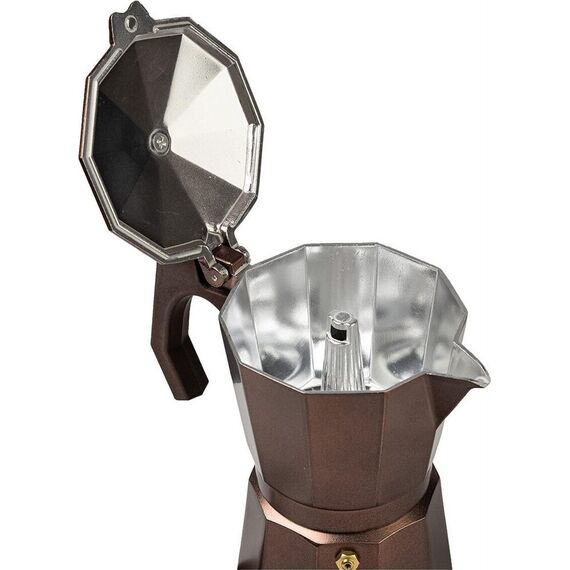Кофеварка гейзерная Лунго 0.3л / 0.3L Подходит для всех типов в т.ч. индукционной Материал: литой алюминий Состав кофеварки: Емкость для воды с клапаном давления: алюминий Фильтр-воронка: алюминий Плоский фильтр: алюминий Уплотнительное силиконовое ко