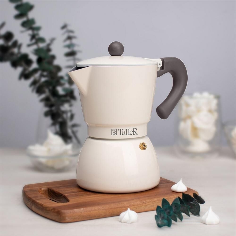 Кофеварка гейзерная Hygge 0.3л / 0.3L Подходит для всех типов плит, кроме индукционной. Материал: литой алюминий, нейлон Состав кофеварки: Емкость для воды с клапаном давления: алюминий Фильтр-воронка: алюминий Плоский фильтр: алюминий Уплотнительное
