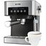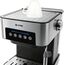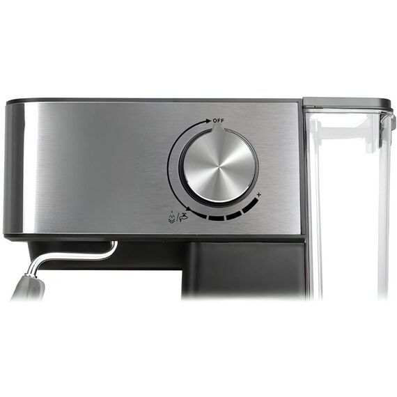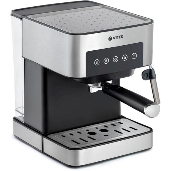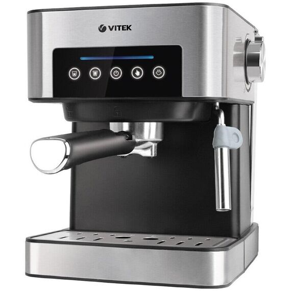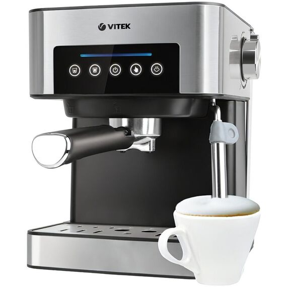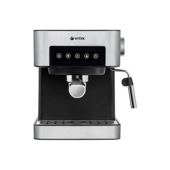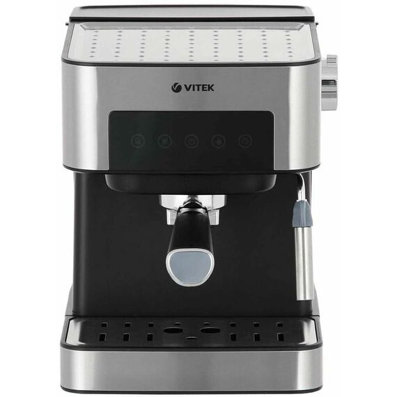 Кофеварка рожковая. Мощность: 850 вт, Давление помпы: 15 бар, Съемный резервуар для воды: 1,6 литра, Капучинатор, Индикатор уровня воды, Индикация включения, Подогрев чашек, Приготовление капучино, Приготовление эспрессо, Съемный лоток для сбора капель, Дисплей: Сенсорная панель управления, Материал корпуса: нержавеющая сталь/пластик, Особенности: Итальянская помпа фирмы Ulka; Кофеварка с термоблоком обеспечит безупречный вкус напитка, быстроту приготовления, уменьшить затраты на электроэнергию; Функция программирования объёмов кофе (одна порция, двойная порция), Тип используемого кофе: молотый, Цвет: Серебро/черный