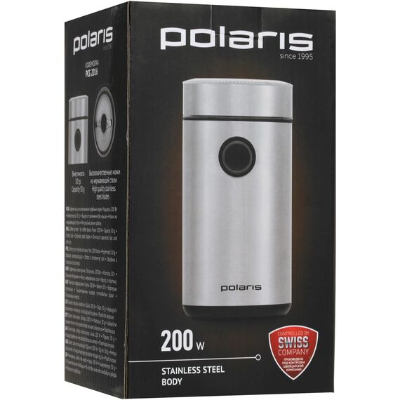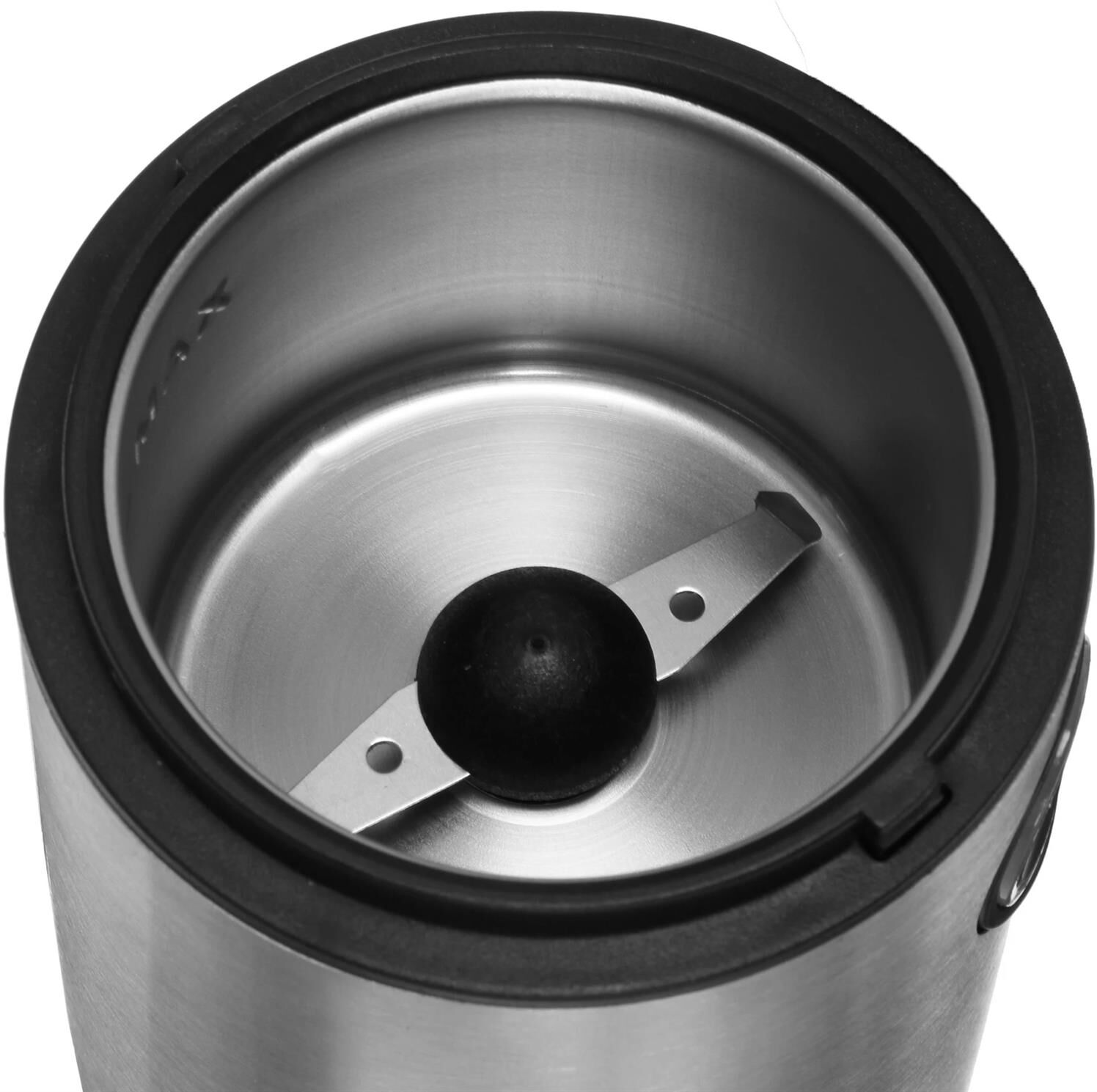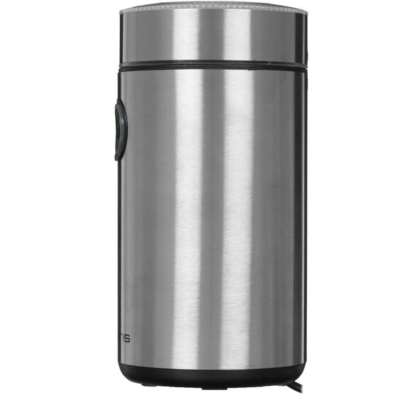 Модель рассчитана на загрузку 50 граммов зерен и оснащена высококачественными ножами из нержавеющей стали. Безопасность работы прибора обеспечивает функция блокировки при снятой крышке. Мощность кофемолки составляет 200 ватт. Имеет импульсный режим работы.