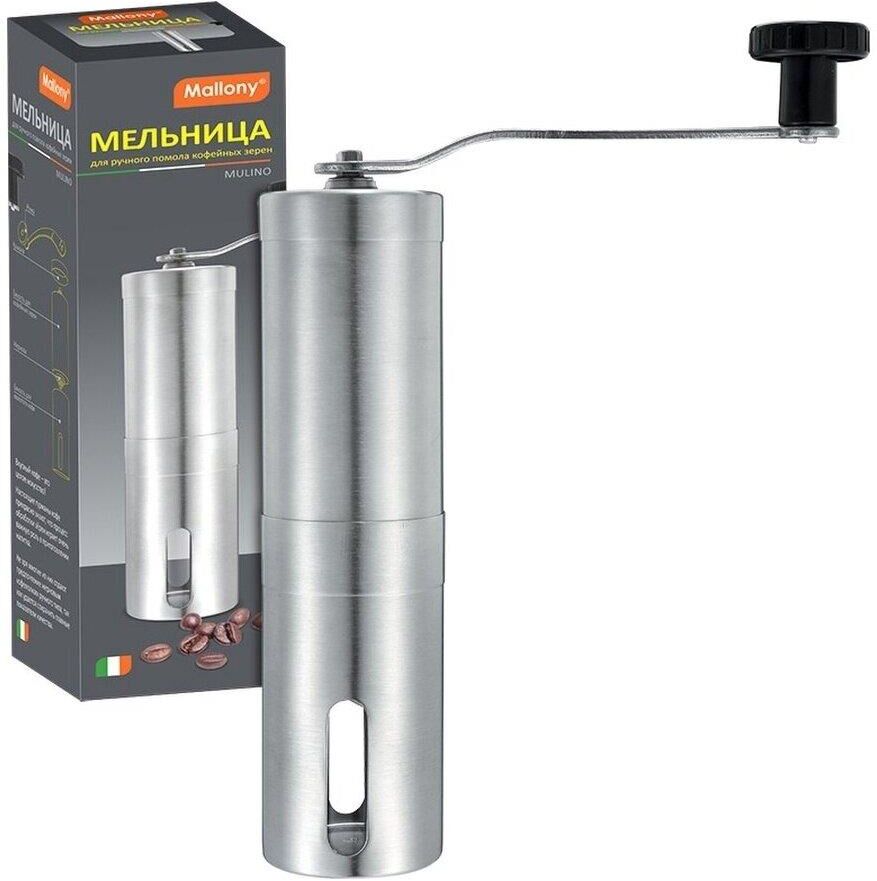 Мельница для ручного помола MALLONY Мельница для ручного помола кофейных зерен, серия Mulino, р-р 4,7*19 см, нерж сталь (004682)