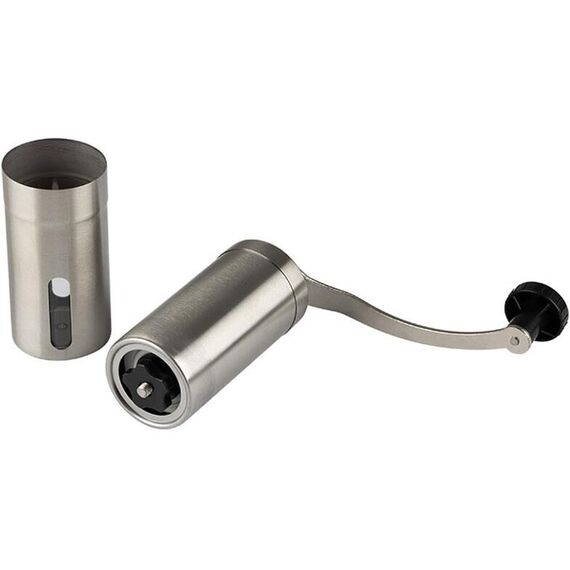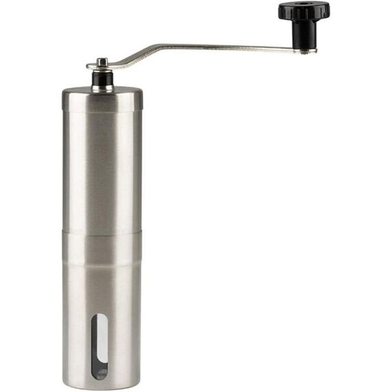 Мельница для ручного помола кофейных зерен, со съемной ручкой. серия Mulino, р-р 4,7*19 см, объем 95 мл/Толщина нерж стали — 0,4 мм. материалы — нерж ст 201/акрил/керамика, пластмасса, тм Mallony (корпус из нерж стали, жернова из грубой керамики). упаковка: пузырчатая пленка + цветная коробка. Не рекомендуется мыть в посудомоечной машине, чистить щеточкой. Регулировка степени помола.