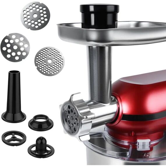 Многофункциональный кухонный комбайн мощностью 1500 Вт с 6 скоростями и импульсным режимом (от 70 до 220 об/мин) станет незаменимым помощником на кухне. Прибор работает от сети 220-240 В (50-60 Гц) и оснащен 4.5-литровой чашей из нержавеющей стали и 1.5-литровым стеклянным блендером, сочетая функции мясорубки, блендера, планетарного миксера и овощерезки (докупается отдельно). Прочный АБС-пластиковый корпус в железно-сером цвете дополнен LED-индикатором работы и удобным рычагом для подъема рабочей головки. Особенности включают плавную регулировку скорости, импульсный режим, ножки-присоски для устойчивости и простую смену насадок. В комплекте: металлическая чаша, защитная крышка, крюк для теста, плоский битер, венчик для взбивания, блендер, мясорубка (с насадками для колбасок и кеббе), руководство пользователя. Устройство упаковано в подарочную и транспортировочную коробки, а уровень шума менее 75 дБ делает работу комфортной.