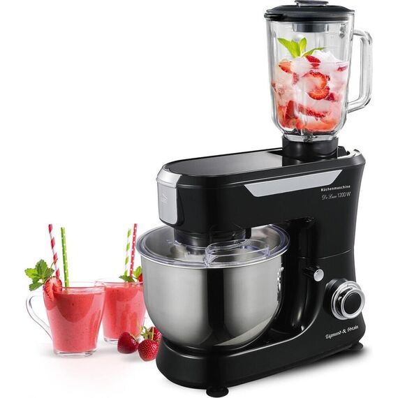 Кухонная машина Мощность: 1200 Вт Напряжение: 220-240В, 50/60Гц Объем чаши: 5л Объем блендера: 1,5л Кол-ва насадок: 12 Кол-во скоростей: 6 Импульсный режим (турбо): да Тип двигателя: AC (с медной обмоткой) Материал корпуса: ABS - пластик Материал чаши: нерж сталь SUS 304 Материал блендера: стекло