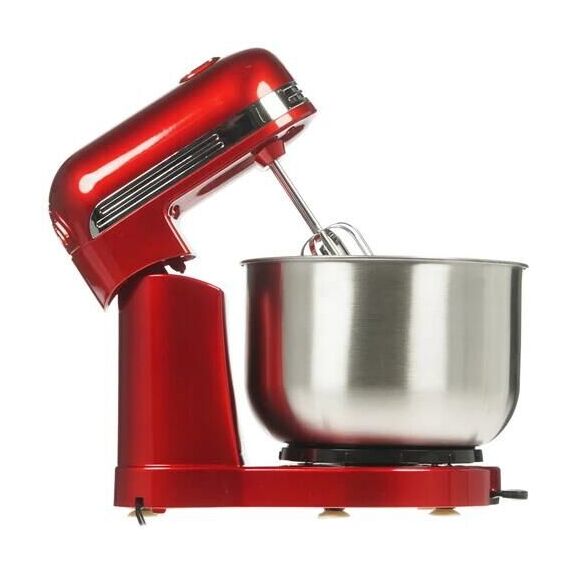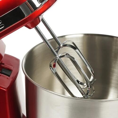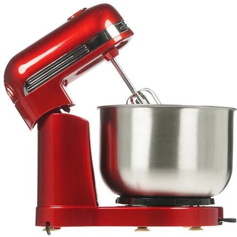 Номинальная потребляемая мощность 600 Вт, Объем чаши 3,5 л, Миксер предназначен для перемешивания продуктов, создания однородной массы и обогащения взбиваемой жидкости воздухом. Миксером взбивают и замешивают яйца, сливки, коктейли, мусс, омлет, тесто, пюре, соусы и другие продукты, Съемная чаша из нержавеющей стали, Возможность изменения положения чаши для оптимального смешивания продуктов, Контроль наклона миксера, Противоскользящие резиновые ножки, Насадки: 2 венчика для взбивания яиц и крема, 2 насадки для замешивания теста, Плавная регулировка скоростей, 5 скоростных режимов, Низкий уровень шума, Автоматическая блокировка при неправильной установке, Цвет: красный.