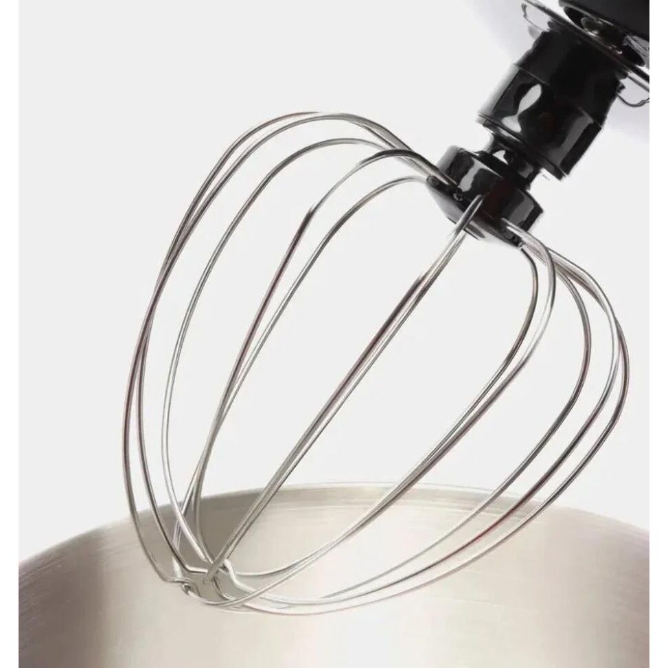 Планетарный миксер Мощность: 1200 Вт Металлическая чаша: 5л. 7 режимов скорости Крышка от разбрызгивания 3 съемные насадки: венчик для взбивания, для смешивания, для замешивания теста Планетарное вращение Регулировка наклона рабочей части