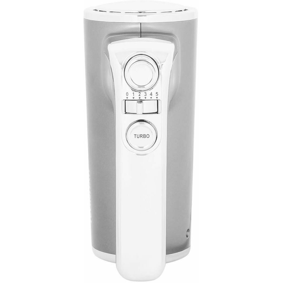 Тип ручной Мощность 600 Вт Количество скоростей 5 Турборежим Венчик для взбивания Крюки для теста Цвет миксера серебристый/серый