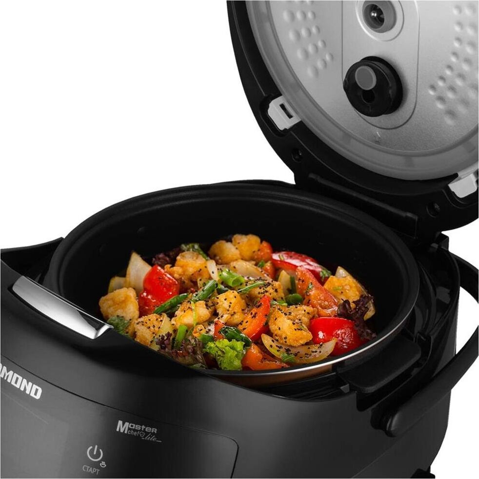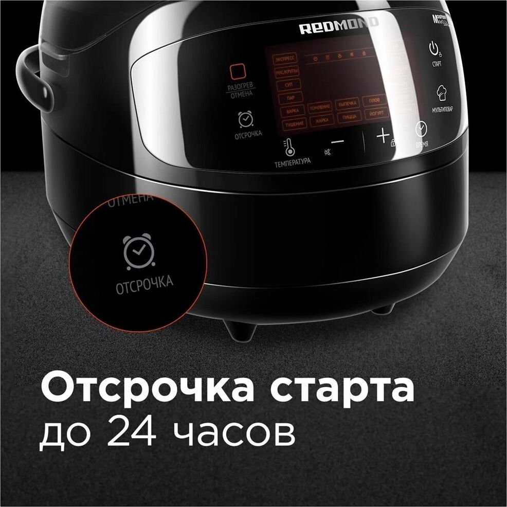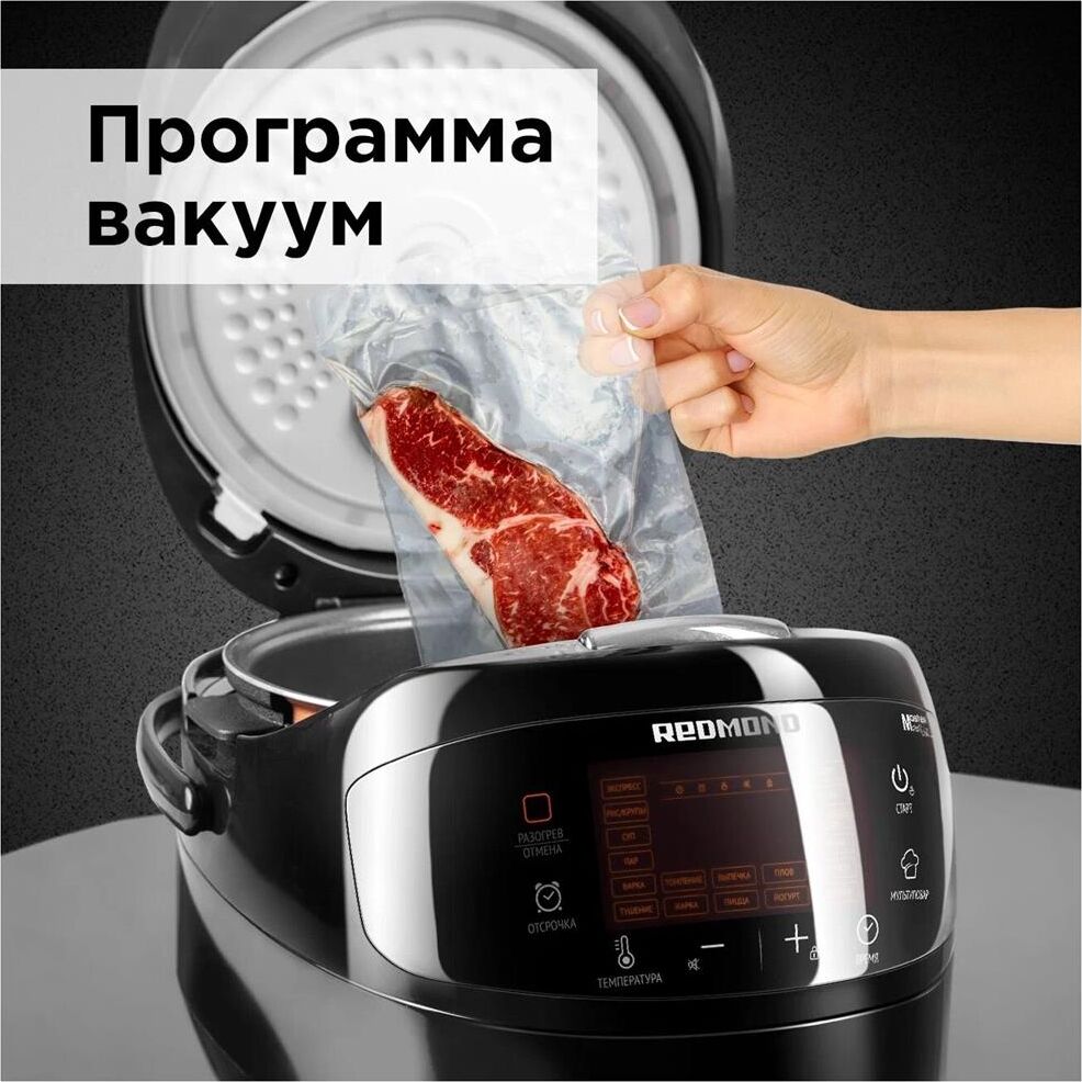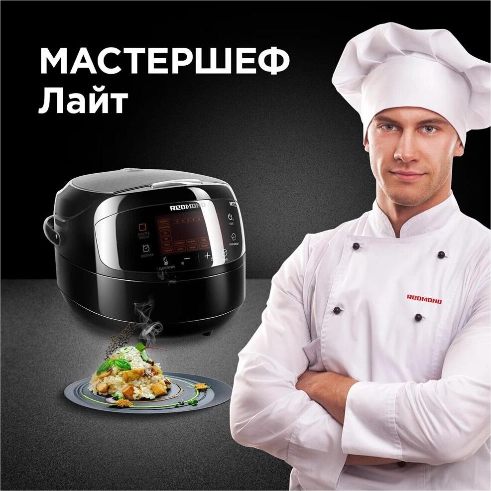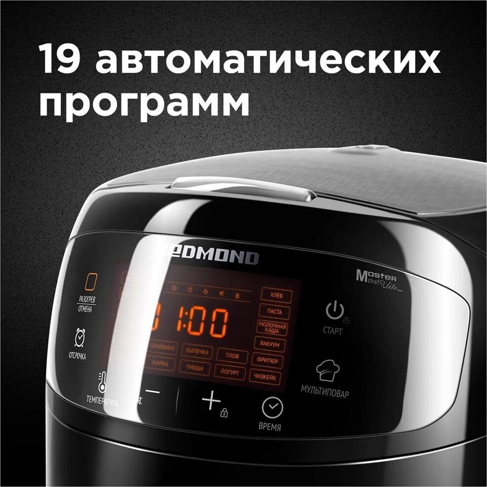 REDMOND RMC-M96, Черный Тип мультиварка Тип управления электронный Поддержка на операционных системах — Мощность 860 Вт Напряжение 220-240 В, 50 Гц Материал корпуса металл пластик Защита от поражения электрическим током класс I Система защиты да Цвета Черный Количество автоматических программ 19 Технология Sous-Vide есть Количество чаш 1 Съемная чаша есть Чаша с ручками есть Покрытие чаши антипригарное DAIKIN® (Япония) Материал чаши алюминий Общий объем чаши 5 л Полезный объем чаши 4 л