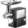 Параметры Максимальная мощность 3600 Вт Номинальная потребляемая мощность 500 Вт Производительность 2,5 кг/мин Объем контейнера для фарша 1 л Диаметр отверстий решеток для измельчения и рубки 3, 5, 7 мм Описание Мясорубка электрическая предназначена для измельчения вареного или сырого мяса и подобных продуктов, а также может использоваться для изготовления колбасок, печенья в бытовых и аналогичных условиях Подходит для обработки любого вида мяса Цвет: черный/нержавеющая сталь Прочный металлический привод шнека увеличивает надежность и долговечность прибора Съемный контейнер для фарша и хранения насадок Крестообразный нож из высококачественной нержавеющей стали Три решетки из нержавеющей стали для измельчения и рубки с отверстиями разного диаметра Насадка для набивки колбас Две насадки «КУББЕ» Удобный толкатель Противоскользящие резиновые ножки Автоматическое отключение при забивании горловины продуктами Функция «РЕВЕРС» обеспечивает простоту очистки шнека при забивании продуктами Система защиты двигателя от перегрева