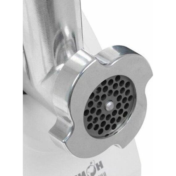 Габариты 0,30 х 0,19 х 0,40 Вес 4,9 кг. Мощность1500 Вт Производительность 1,66 кг/мин Материал Пластик Защита двигателя от перегрузки; Удобное хранение ножа и решеток; 3 вида решеток для получения фарша разной консистенции - с диаметром отверстий 4,9 мм и 7 мм, а также овальными отверстиями; Высокое размещение шнековой камеры; Ручка для переноски; Устойчивые нескользящие ножки для фиксации мясорубки на поверхности стола