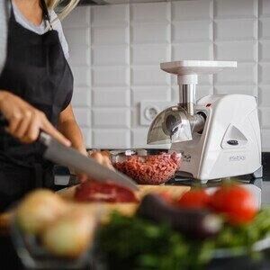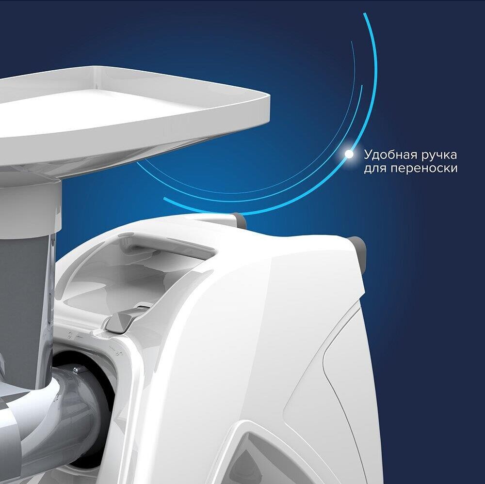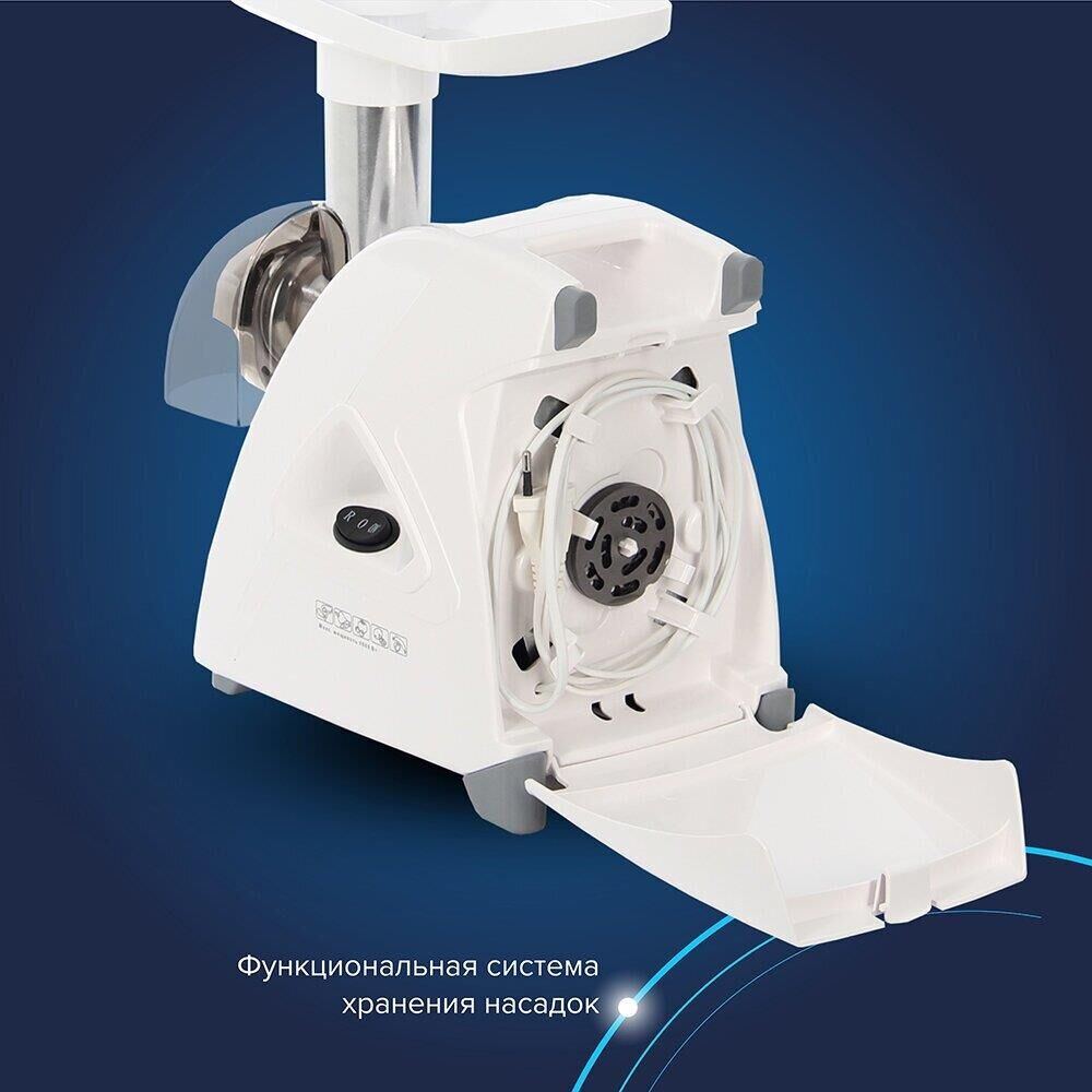 Габариты 0,38 х 0,19 х 0,53 Вес 5,2кг Мощность1500 Вт Производительность 1,7 кг/мин Материал Пластик Двойная защита от перегрузки; Функция «реверс» для предотвращения наматывания жилок на шнек; Отсек в корпусе для шнура питания, хранения ножа и насадок; 3 вида решеток для получения фарша разной консистенции - с диаметром отверстий 3,5 мм и 7 мм, а также овальными отверстиями; Экран для защиты от брызг, который поможет сохранить кухню в чистоте; Высокое размещение шнековой камеры; Возможность вертикального хранения для экономии пространства на кухне; Ручка для переноски; Устойчивые нескользящие ножки для фиксации мясорубки на поверхности стола;