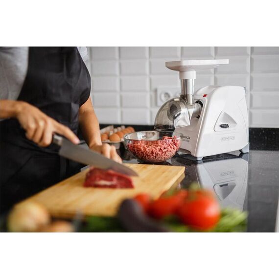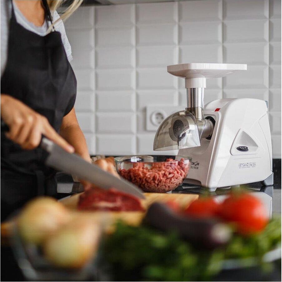 Электрическая мясорубка М35.04 Аксион Мощность1500 Вт Производительность1,7 кг/мин Материал Пластик Размеры0,38 х 0,19 х 0,38 Вес4,4 кг. Функция Реверс Прочный и острый нож с саблевидной кромкой Удобный отсек для хранения шнура и решеток Ручка для переноски Ножки из нескользящего эластичного материала Электрическая мясорубка М35.04 повышенной мощности без труда справится с мясом любого качества. Предназначена для приготовления фарша из мяса, рыбы, грибов; измельчения овощей, фруктов; получения пюреобразных масс из ягод; профилирования теста.