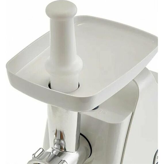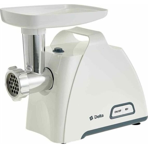 DELTA DL-6104M белый с серым Параметры Максимальная мощность 2000 Вт Номинальная потребляемая мощность 300 Вт Производительность 1,8 кг/мин Описание Электромясорубка предназначена для измельчения мяса и подобных продуктов, а также приготовления печенья в бытовых и аналогичных условиях Подходит для обработки любого вида мяса Цвет: белый с серым Прочный металлический привод шнека увеличивает надежность и долговечность прибора Крестообразный нож из высококачественной нержавеющей стали Две решетки для измельчения с отверстиями разного диаметра - 5 и 7 мм Две насадки «КУББЕ» Насадка для набивки колбасок Удобный толкатель Противоскользящие прорезиненные ножки Функция РЕВЕРС обеспечивает простоту очистки шнека при забивании продуктами Система защиты двигателя от перегрева Упаковка: цветная коробка