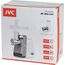 JVC JK-MG124 Мощность, Вт. 2000 Производительность, кг/мин. 2 Функция "Реверс" есть Механический фиксатор блока мясорубки есть Материал ножа нержавеющая сталь Материал лотка пластик Особенности Ручка для перемещения есть Отсек для хранения решеток есть Защита двигателя от перегрузки есть Прорезиненные ножки есть Комплектация Решетки 5 мм, 7 мм Насадки терка, нарезка Полная комплектация мясорубка, насадки-овощерезки, гарантийный талон, инструкция на русском языке Корпус Материал корпуса пластик Цвет белый с серым Энергопотребление