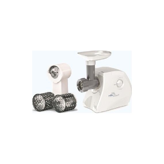 Мощность 1500Вт. Тип мясорубки шнековый. Производ-ть при пригот-и фарша не менее 35 кг/ч. Габариты: 245х151х213 мм. Комплектация: мясорубка + малая овощерезка. РЕВЕРС.