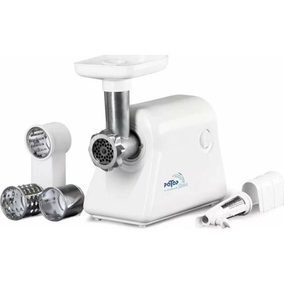 Мощность 1500Вт. Тип мясорубки шнековый. Производ-ть при пригот-и фарша не менее 35 кг/ч. Габариты: 285х162х221 мм. Комплектация: мясорубка + соковыжималка, малая овощерезка.