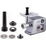 Мясорубка электрическая, мощность 3000 Вт, функция реверс, литой алюминиевый корпус, две скорости работы, мощный медный мотор с защитой от перегрева, металлические шестеренки и металлический редуктор, набор решеток для фарша: маленькая (4мм), средняя (7мм) и для рубки мяса, низкий уровень шума - менее 85 дБ, простой и надежный фиксатор рабочей головы, прорезиненные нескользящие ножки. Аксессуары: насадки для приготовления сосисок и колбасок кеббе. Производительность: 2.5кг/мин. Цвет: серый.
