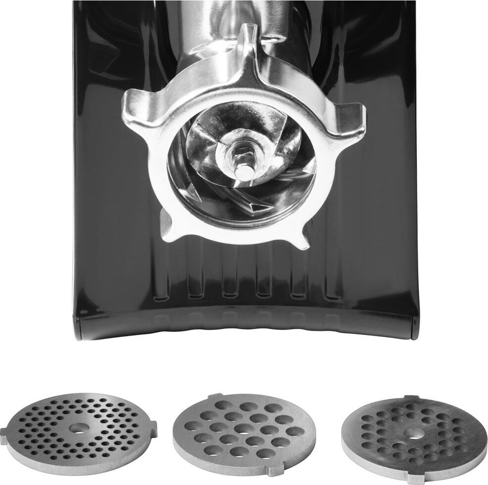 Основные характеристики Максимальная мощность1200 Вт Количество скоростей1 Функция реверсаДА Защита двигателя от перегрузкиДА Защита от перегреваДА Насадки Перфорированный диск для фарша3 Насадка для приготовления домашних колбасДА Насадка для кеббеДА Корпус Вес1.8 кг Цвет мясорубкичерный/серебристый Материал лотканержавеющая сталь Материал корпусанержавеющая сталь/пластик Прорезиненные ножкиДА Длина сетевого шнура1 м Габариты упаковки (ед) ДхШхВ0.26x0.33x0.25 м Особенности ТолкательДА ОсобенностиМеталлическое соединение шнека с редуктором обеспечивает повышенный ресурс прибора и способствует долговечности мясорубки Срок гарантии12 мес.