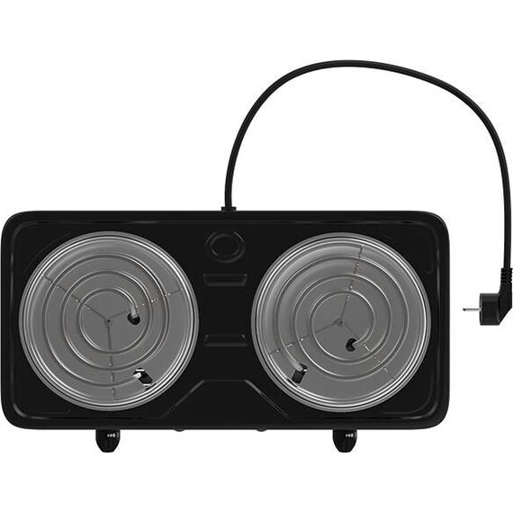 Мощность 2000 Вт, две стальные конфорки 14 см, 5 режимов регулировки температуры, индикатор включения, защита от перегрева.