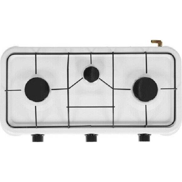 Номинальная тепловая мощность 2,2х2+1,0кВт. Номинальный расход газа 393 г/ч. Номинальное давление используемого газа 3,0 кПа. Вид сжиженного газа пропан/бутан. Количество конфорок 3 конфорки. Тип настольная. Тип розжига ручной. ВНИМАНИЕ Запрещено подключать баллон с газом напрямую к плите без регулятора давления газа (редуктора) Газовый шланг, регулятор давления газа (редуктор) и баллон в комплект поставки не входят.
