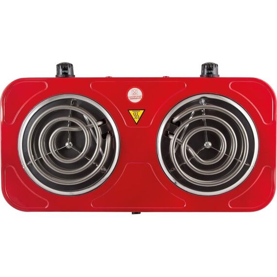 Мощность: 1000 Вт + 1000 Вт. Нагревательный тен. Размер конфорок: 140 мм. 2 световых индикатора работы. Защита от перегрева. Состав: металл, пластик, кабель. Цвет красный.