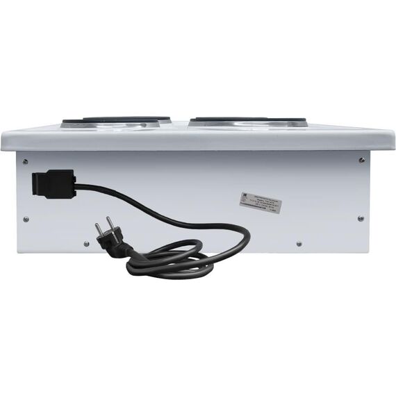 (ШхГхВ) 50х60х18,5/21,9 см.Цвет белый.Установленная мощность: 3.8 кВт Масса нетто: 15 кг.Количество конфорок: 4.Мощность передней левой конфорки: 0.7 кВт (145 мм) Мощность передней правой конфорки: 1.2 кВт Мощность задней левой конфорки: 1.2 кВт Мощность задней правой конфорки: 0.7 кВт (145 мм)