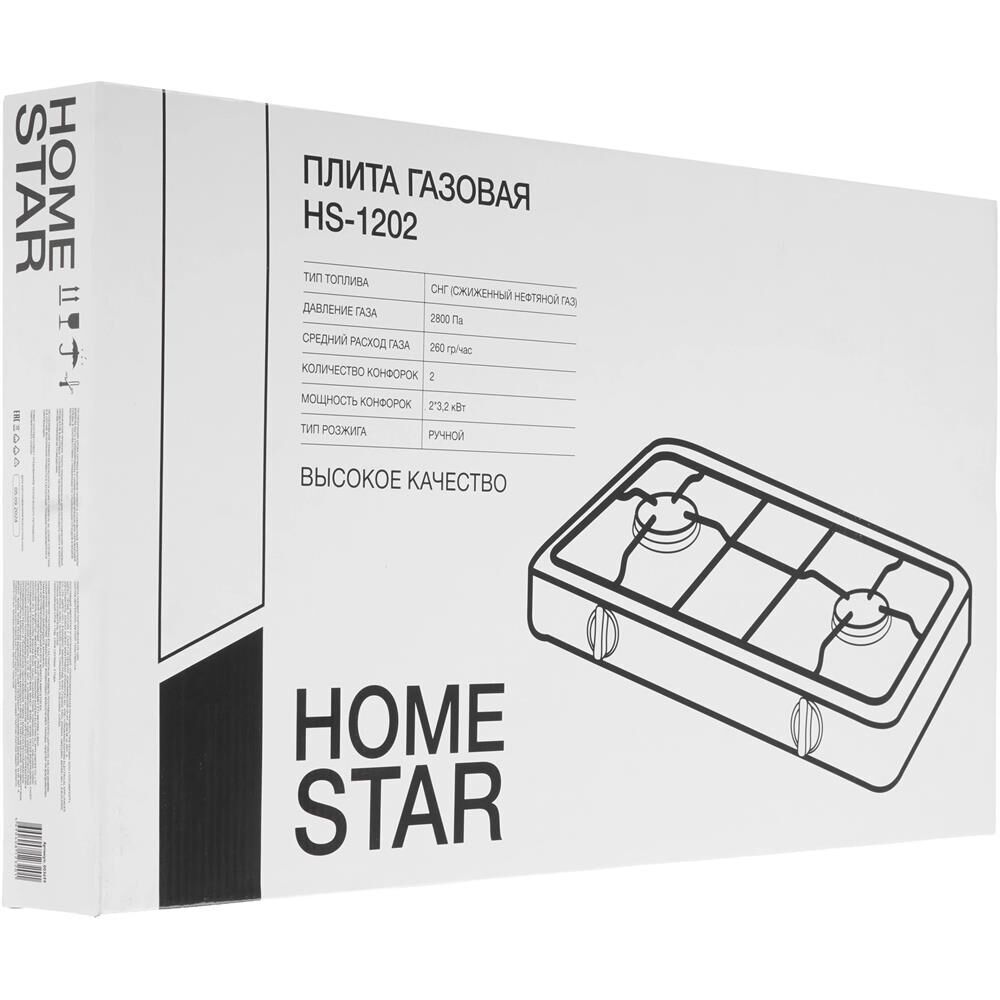 HOMESTAR HS-1202 (003699) Мощность: 2*3200 Вт Количество конфорок: 2 Давление газа: 2800 Pa Тип топлива: сжиженный нефтяной газ цвет черный Материал корпуса: металл