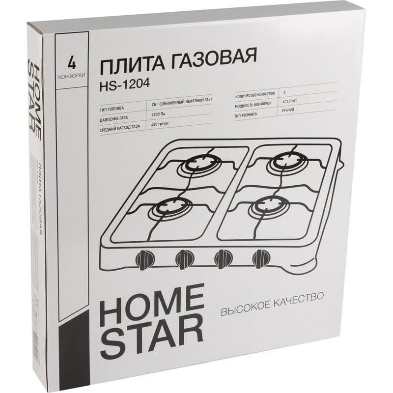Плита газовая HOMESTAR HS-1204 (003701) плита газовая настольная четырехкомфорочная