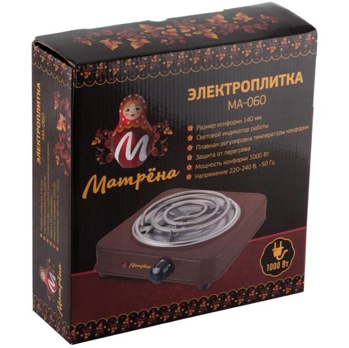 Плитка электрическая МАТРЁНА МА-060 коричневый однокомфорочная