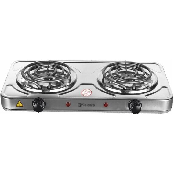 Мощность 2000Вт, 2 конфорки 145/145 мм, прочный корпус из нержавеющей стали, спиральный нагревательный элемент, регулируемый термостат, индикатор работы, длина шнура - 1м, цвет корпуса: нерж.сталь/черн.