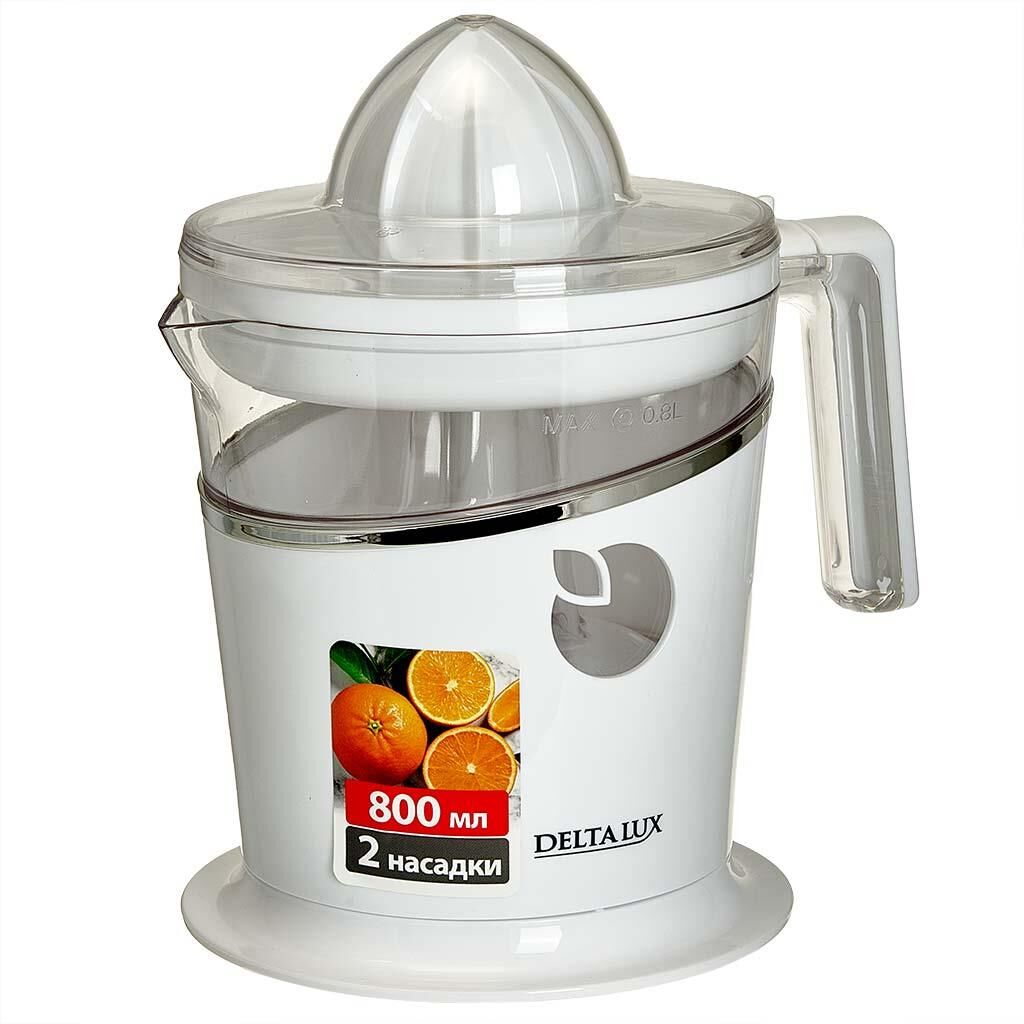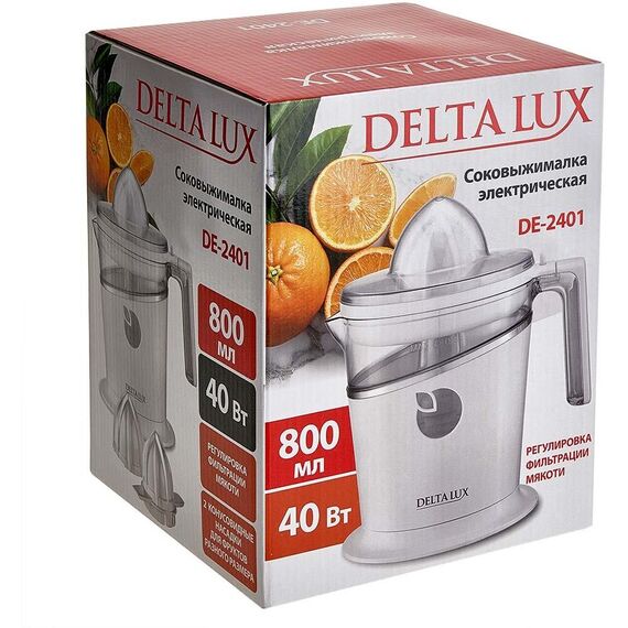 Номинальная потребляемая мощность 40 Вт Емкость чаши 800 мл Описание Соковыжималка электрическая предназначена для извлечения сока из лимона, лайма, апельсина и грейпфрута в бытовых и аналогичных условиях Корпус из пластика Цвет: белый Прозрачная чаша с мерной шкалой Прозрачная крышка Две конусовидные насадки разных размеров Противоскользящие резиновые ножки Односкоростной режим работы Вращение в обе стороны Регулировка фильтрации мякоти Возможность мытья чаши в посудомоечной машине