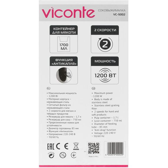 Соковыжималка, Мощность 1200W, 2 СКОРОСТИ: для мягких и твёрдых продуктов, КОНТЕЙНЕР ДЛЯ МЯКОТИ - 1700мл, КОНТЕЙНЕР ДЛЯ СОКА - 750мл, СИСТЕМА ПРЯМОЙ ПОДАЧИ СОКА, автоматическая блокировка при неправильно установленной крышке, надежный фильтр из нержавеющей стали, ШИРОКАЯ ЗАГРУЗОЧНАЯ ГОРЛОВИНА - 85 ММ, функция "Антикапля", прорезиненные ножки для устойчивости, удобство и простота в обращении и чистке.