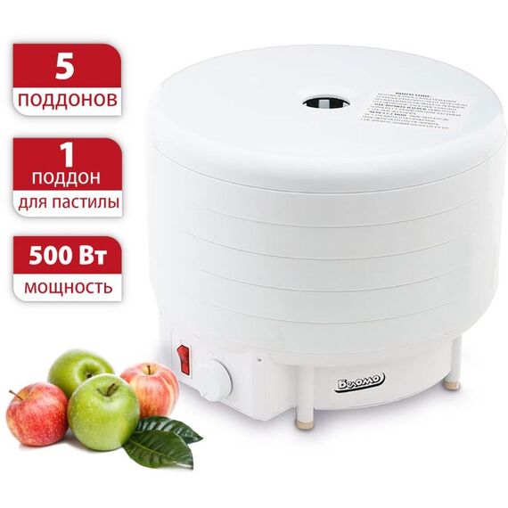 Мощность устройства (Вт) 500 Вт, Тип управления механическое, Тип сушки для овощей конвекционная, Форма сушилки для овощей сборная из поддонов, Количество поддонов 5 шт., Высота поддона 3.2 см, Материал поддонов пищевой пластик, Доп. опции сушки для овощей вяление мяса и рыбы; регулировка температуры сушки, Применение сушка пастилы; сушка овощей; сушка фруктов, Минимальная температура 35 градусов, Максимальная температура 75 градусов, Страна производства Беларусь