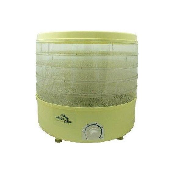 РОТОР ДИВА 5 прозрачными решетками (СШ-007) (цветная упаковка). Мощность 520Вт. Max t воздуха на нижнем поддоне,°С: 70. Объем сушильной камеры 20л. Габариты: 40х39см. Масса 5кг.