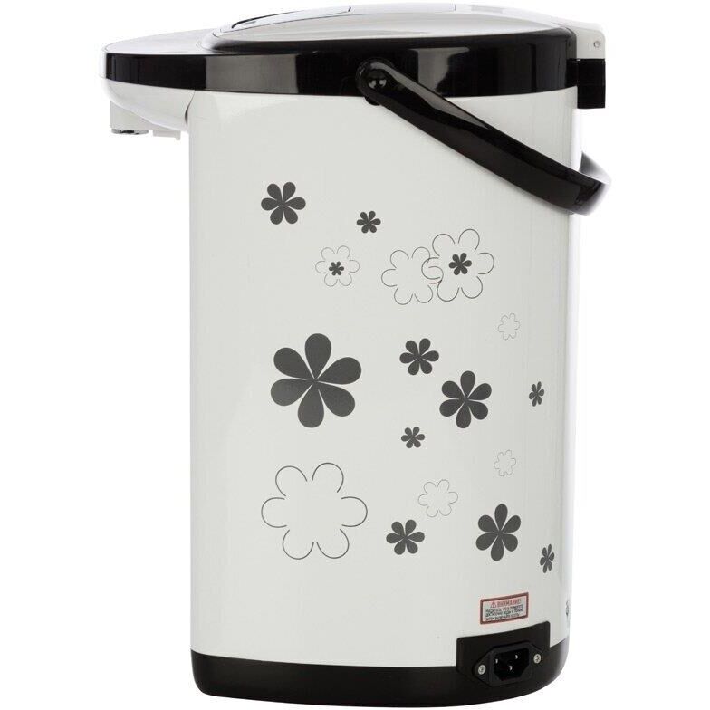Мощность 750Вт. Объем 5л. Способ подачи воды: автоматический (нажатием кружкой, нажатием кнопки). Скрытый нагреват. элемент. Нержавеющая стальная колба. Функция поддержания температуры, блокировки крышки. Быстрое кипячение воды.