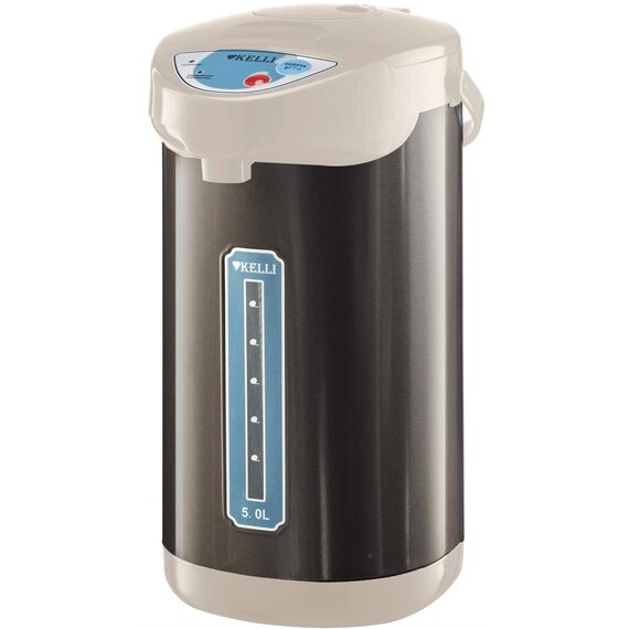 Термопот; Объем: 5 л; Мощность в режиме кипячения: 1100 Вт; Мощность в режиме поддержания температуры: 35 Вт; 3 режима дозировки воды: ручной/ автоматический/ электрический; Металлический корпус; Электрическая помпа; Внутренняя емкость из нержавеющей стали; Поворот корпуса на 360°; Световые индикаторы; Шкала уровня воды; Съемная крышка для удобства очистки; Съемный сетевой шнур электропитания; Режим поддержания температуры воды; Функция повторного кипячения и дехлорирования воды; Двойная защита от перегрева; Сеть: 220-240В, 50гц